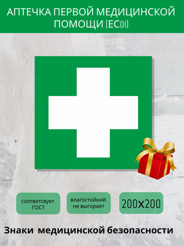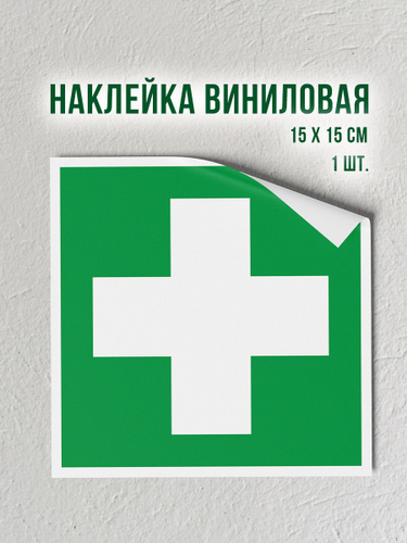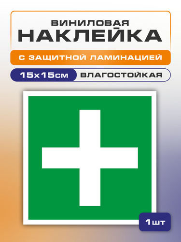 Наклейка Аптечка первой медицинской помощи, 15х15 см 1 шт., знак ЕС01, влагостойкая, самоклеющаяся