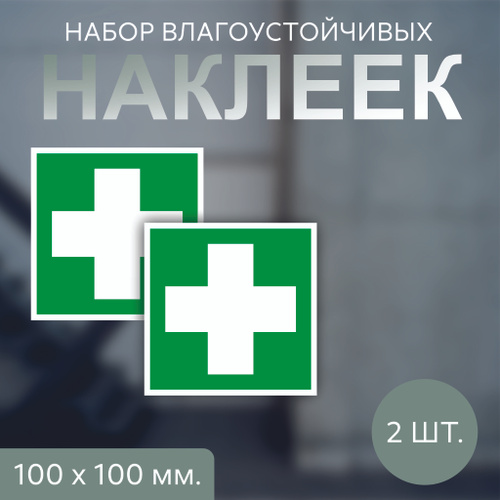 Наклейка информационная "Аптечка первой медицинской помощи", квадрат 100x100 мм, 2 шт.