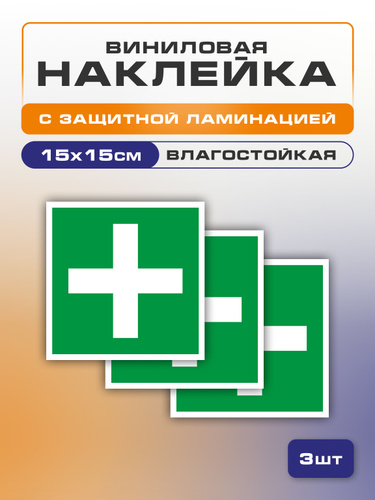 Наклейка Аптечка первой медицинской помощи, 15х15 см 3 шт., знак ЕС01, влагостойкая, самоклеющаяся