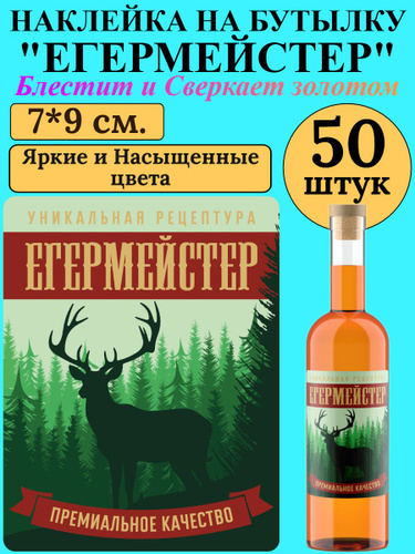 Этикетка наклейка на бутылку МастерВар "ЕГЕРМЕЙСТЕР", 7*9 см., пленка, для самогона, (50 штук)