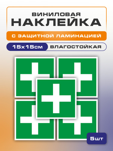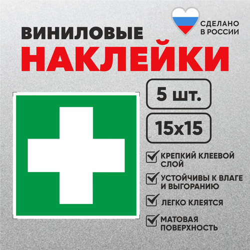 Наклейка Аптечка первой медицинской помощи, 15х15 см 5 шт., знак ЕС01, влагостойкая, самоклеющаяся