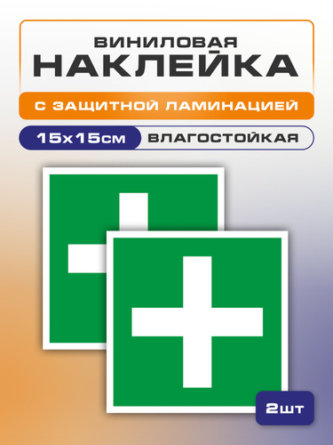 Наклейка Аптечка первой медицинской помощи, 15х15 см 2 шт., знак ЕС01, влагостойкая, самоклеющаяся