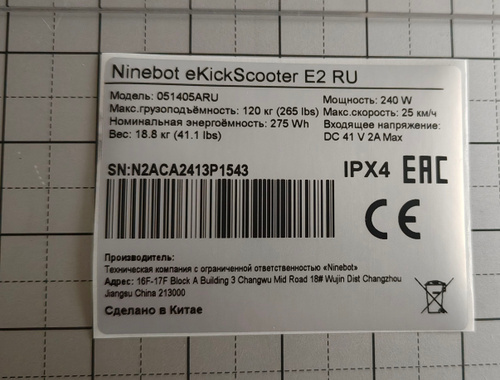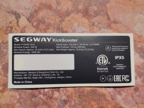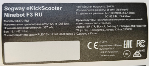 Наклейка для электросамоката Ninebot F3, 240w, 25км/ч