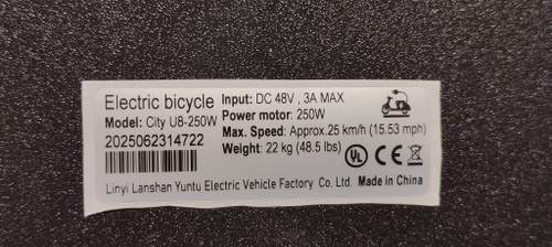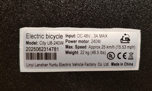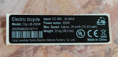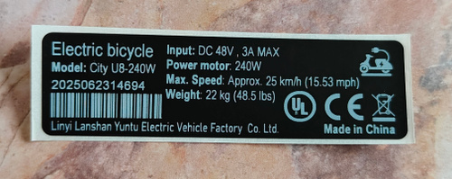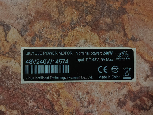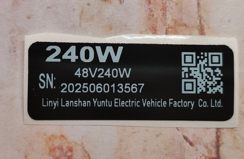 Наклейка для электровелосипеда 240W, (70*20 мм). Черный цвет