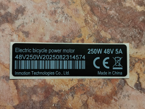 Наклейка для мотор колеса электровелосипеда (250w, 5A) 70x20 мм. Черный цвет