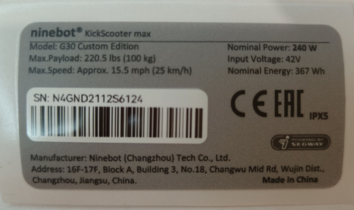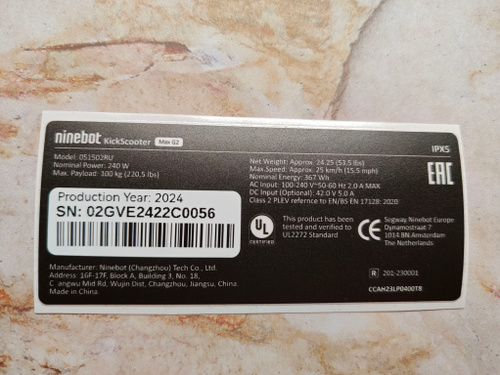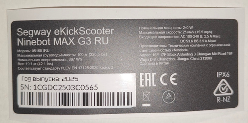 Наклейка для электро самоката Ninebot G3, 240w, 25км/ч