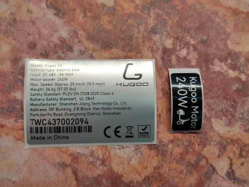 Наклейка (шильдик) для электровелосипеда Kugoo V3. Серебристый цвет