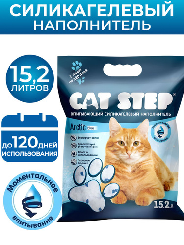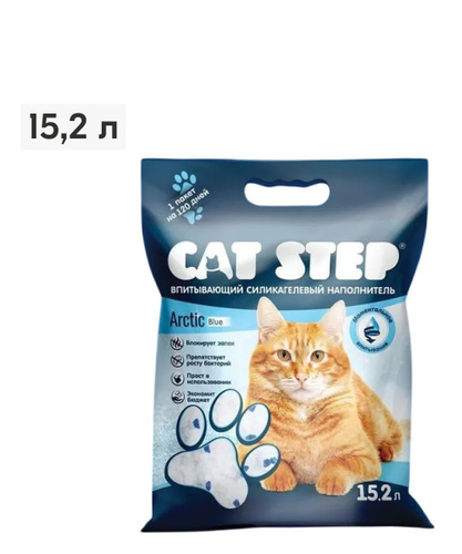 Наполнитель для кошачьего туалета CAT STEP "Arctic Blue", 15,2 л, силикагелевый, впитывающий, без запаха, в гранулах, для лотка