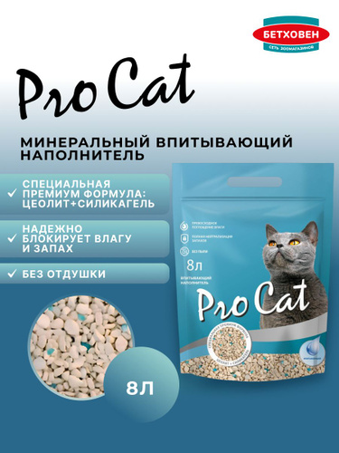 PRO CAT Наполнитель Силикагелевый, Минеральный Впитывающий Без отдушки 4000г.
