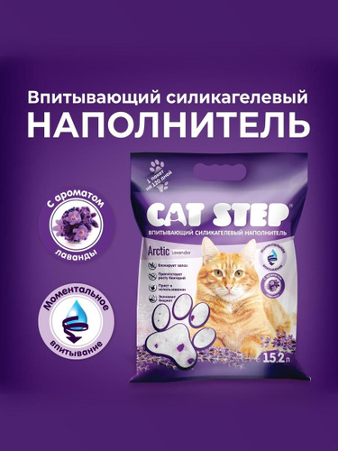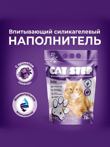 Наполнитель для кошачьего туалета впитывающий, силикагелевый CAT STEP Arctic Lavender, 7,6 л
