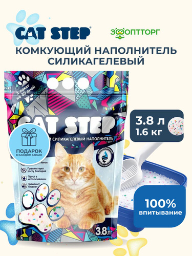 Cat Step Наполнитель Силикагелевый Впитывающий Без отдушки 11700г.