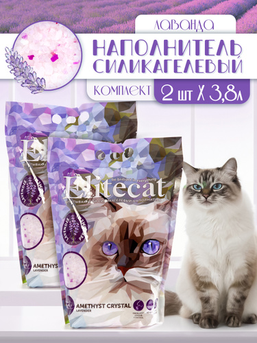 Наполнитель впитывающий силикагель ELITECAT "Amethyst Crystal Lavender" лаванда, 3.8л, КОМПЛЕКТх2шт
