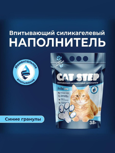 Наполнитель для кошачьего туалета впитывающий, силикагелевый CAT STEP Arctic Blue, 3,8 л. Уцененный товар