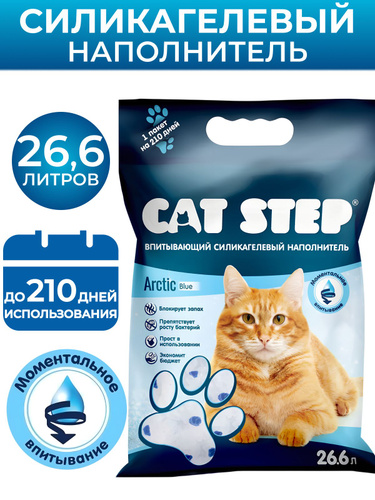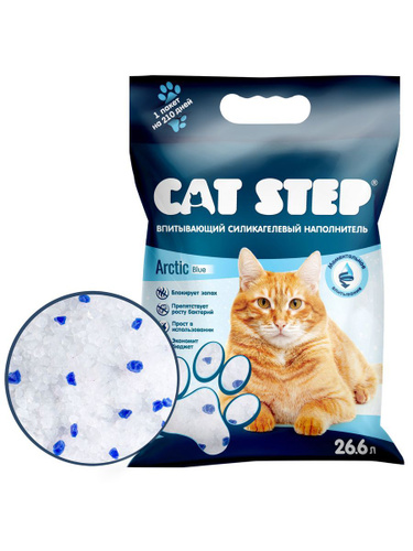 Наполнитель для кошачьего туалета CAT STEP "Arctic Blue", 26,6 л, силикагелевый, впитывающий, без запаха, в гранулах, для лотка