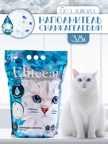 Наполнитель впитывающий силикагель ELITECAT "Saphire Crystal Pure Care", без запаха, 3.8л