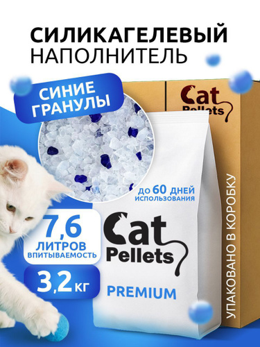 Наполнитель Силикагелевый Cat Pellet для кошачьего туалета впитывающий, без отдушки, 3,2 кг