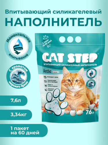 Наполнитель для кошачьего туалета впитывающий, силикагелевый CAT STEP Arctic Blue, 7,6л