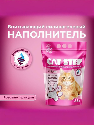 Наполнитель для кошачьего туалета Cat Step Arctic Strawberry силикагелевый впитывающий с ароматом клубники, 1,6 кг (3,8 л)