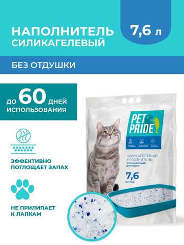 Наполнитель силикагелевый PET PRIDE для кошачьего туалета впитывающий, без отдушки, 7,6 л