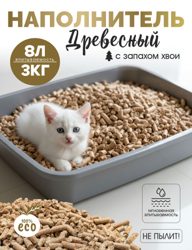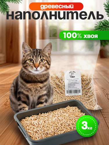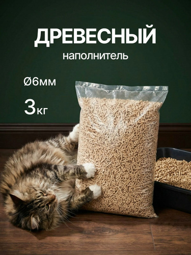 Наполнитель Древесный Впитывающий Без отдушки 3000г.