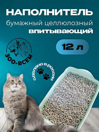 Наполнитель целлюлозный впитывающий 12 л. натуральный (без аромата), "ЗООВСЕМ"