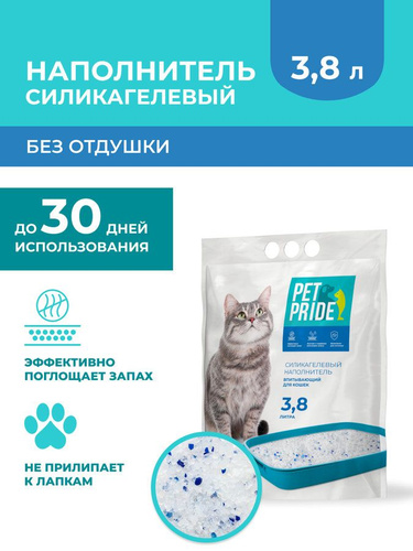 Наполнитель силикагелевый PET PRIDE для кошачьего туалета впитывающий, без отдушки, 3,8 л