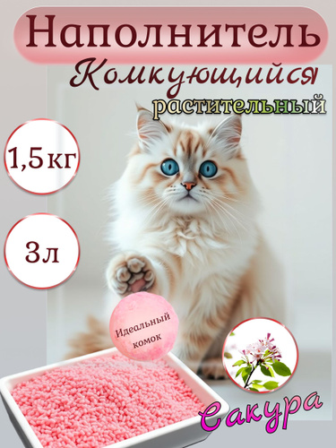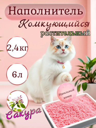 Наполнитель для кошачьего туалета Тофу. Кукурузный, Растительный Комкующийся Сакура 2400 г. 6 литров
