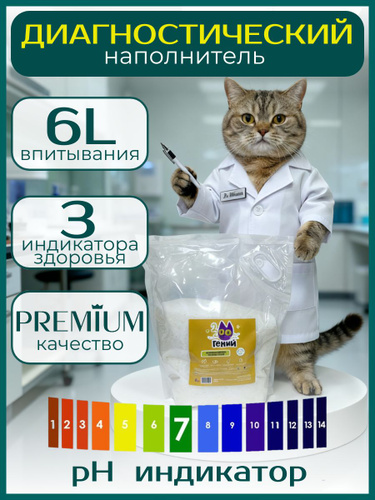 Премиальный диагностический силикагелевый наполнитель ЗООГЕНИЙ с pH-контролем, 6 л меняет цвет, показывает отклонения, держит запах до 30 дней