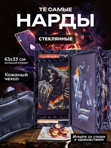 Нарды стеклянные с рисунком Азарт, нарды большие деревянные 60х60 см, подарочные резные в кожаном чехле