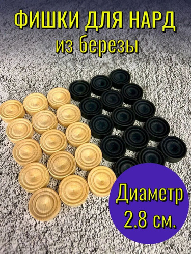 Фишки для нард, диаметр 2,8 см, высота 1 см, береза черные и бежевые
