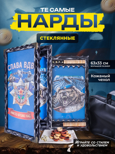 Нарды стеклянные с рисунком ВДВ, нарды большие деревянные 60 на 60 см, подарочные резные в кожаном чехле