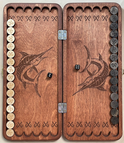 Нарды ручной работы 50*58 см "Рыбалка"