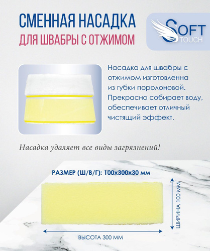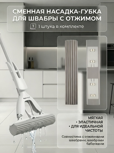 Насадка на швабру "Сменная насадка губка для швабры с отжимом/Запасной сменный блок для роликовой швабры из вспененной губки для мытья"