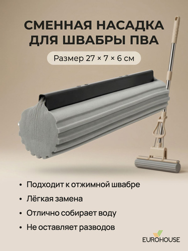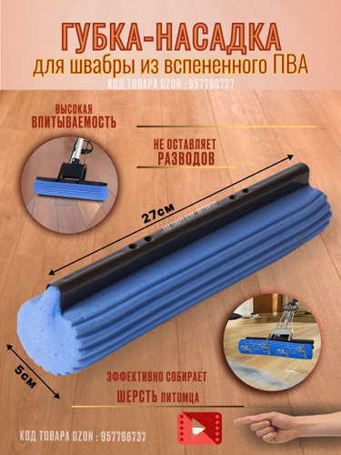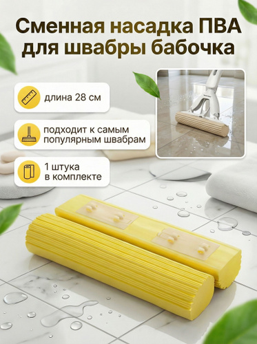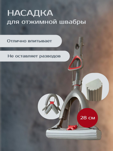 Насадка-губка для швабры с отжимом 28 см, ПВА губка, сменная насадка для уборки пола