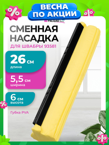 Насадка на швабру PALISAD, губка PVA, 26 х 5.5 х 6 см, для швабры 93581, все виды покрытий, 93582