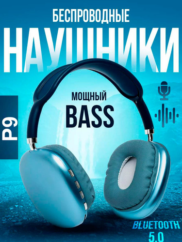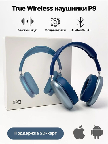 P9 Наушники беспроводные с микрофоном, Bluetooth, 3.5 мм, USB Type-C, синий