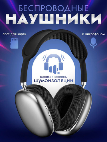Наушники беспроводные накладные, P9 большие полноразмерные, с микрофоном и шумоподавлением MAX