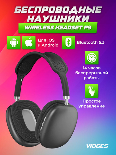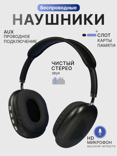 P9 Наушники, Bluetooth, 3.5 мм, черный