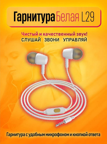 Стерео наушники вакуумные (3.5мм) для телефона, смартфона, плеера, компьютера, ноутбука/ проводные/ с микрофоном/ DREAM L29 белый