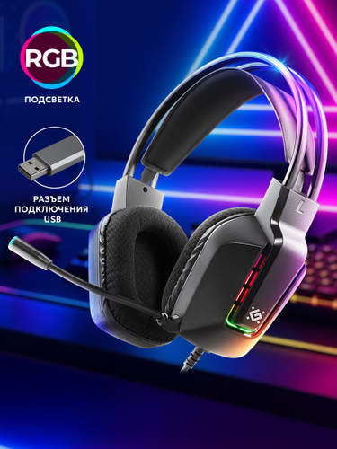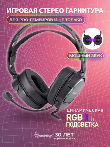 Игровые наушники Smartbuy, подсветка, динамик 50мм, кабель 2м, 2 х 3.5мм + USB