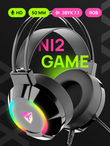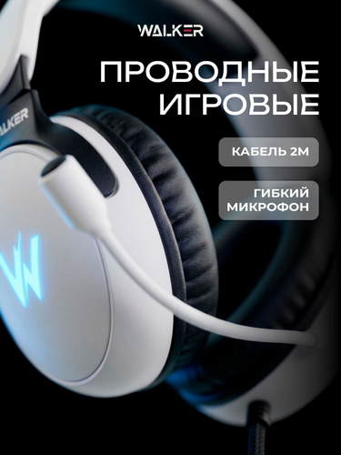 Наушники игровые с микрофоном проводные для компьютера WALKER, накладные с подcветкой