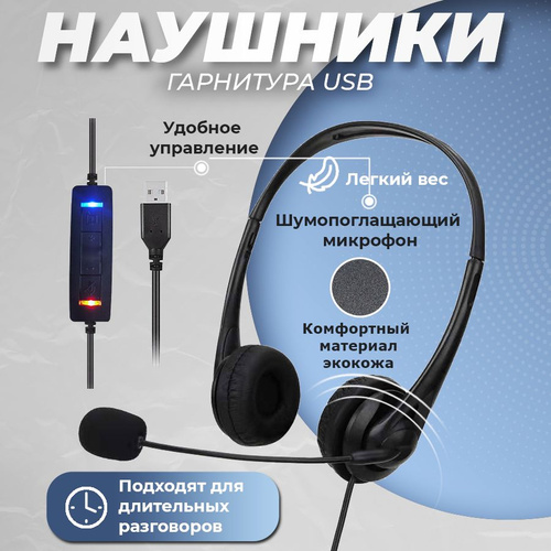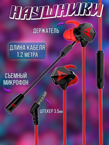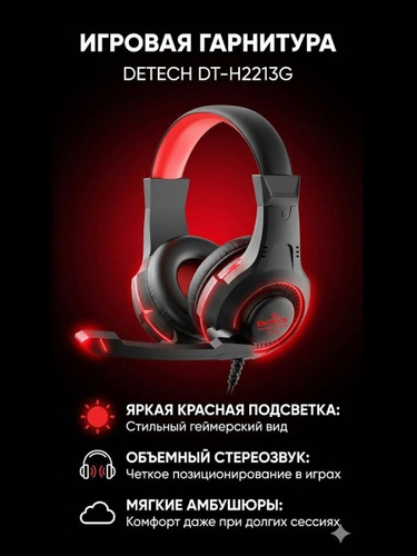 Наушники проводные с микрофоном DT-H2213G, USB, 3.5 мм x2, черный, красный