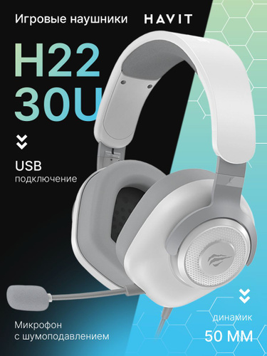 Havit Наушники проводные с микрофоном Havit H2230U, USB, белый, серый металлик