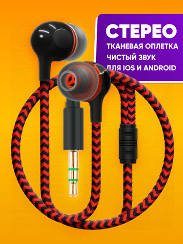 Наушники проводные для телефона Dream S1 красные, aux 3.5mm / наушники проводные без микрофона
