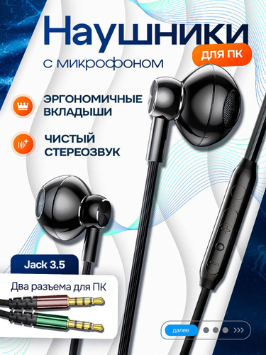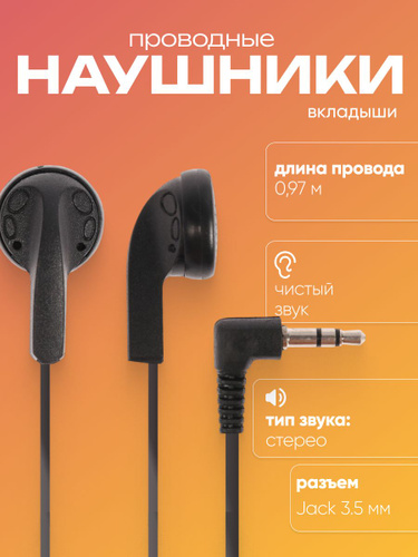 Наушники проводные для компьютера и ноутбука БЕЗ микрофона, Вкладыши, 3.5 мм