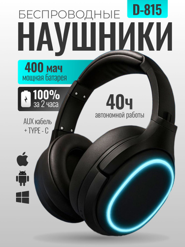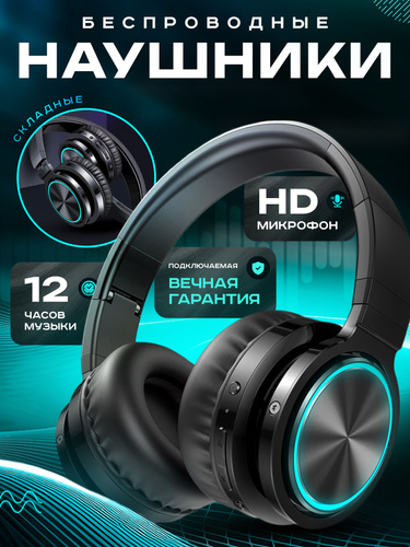 Наушники беспроводные большие с микрофоном блютуз 5.4, microSD, черный