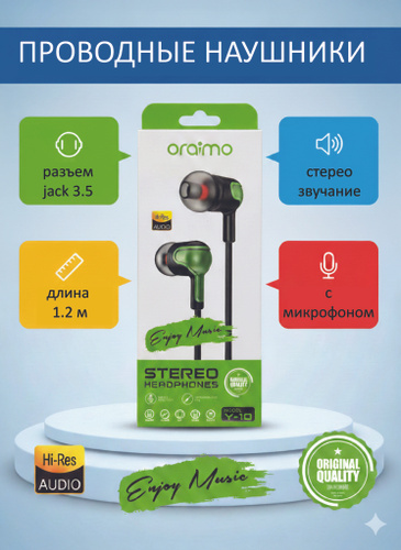 Наушники проводные Orimo HERES AUDIO с микрофоном, стерео, для игр, телефона, ПК, ноутбука. Разъем Jack 3.5 мм.