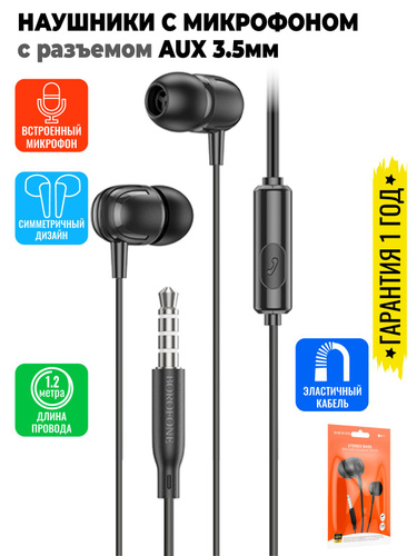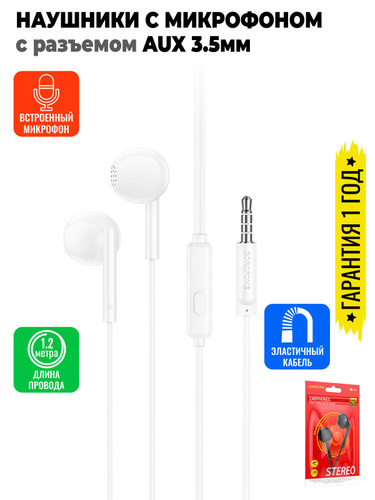 BOROFONE Наушники проводные с микрофоном, 3.5 мм, белый