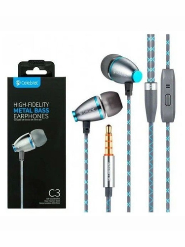 Celebrat Наушники проводные с микрофоном, 3.5 мм, голубой