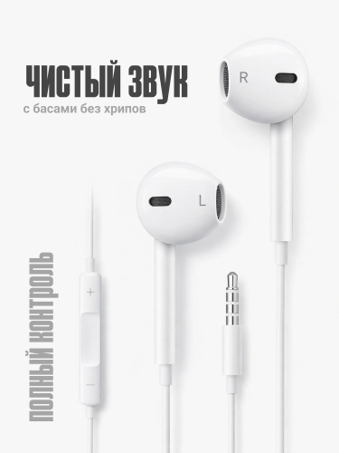 Наушники проводные с микрофоном, 3.5 мм, белый
